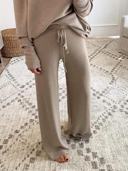 It’s cold outside but it’s nice and toasty in this! We can’t think of anything we’d rather wear than our effortless knit set. Cute worn together or separately, the pretty, ribbed pieces are designed for errands, at-home relaxation—even date night when accessorized with stilettos and gold jewelry. The easy fit delivers a wide neckline that can be pushed off the shoulder and drawstring pants with an elongated leg.