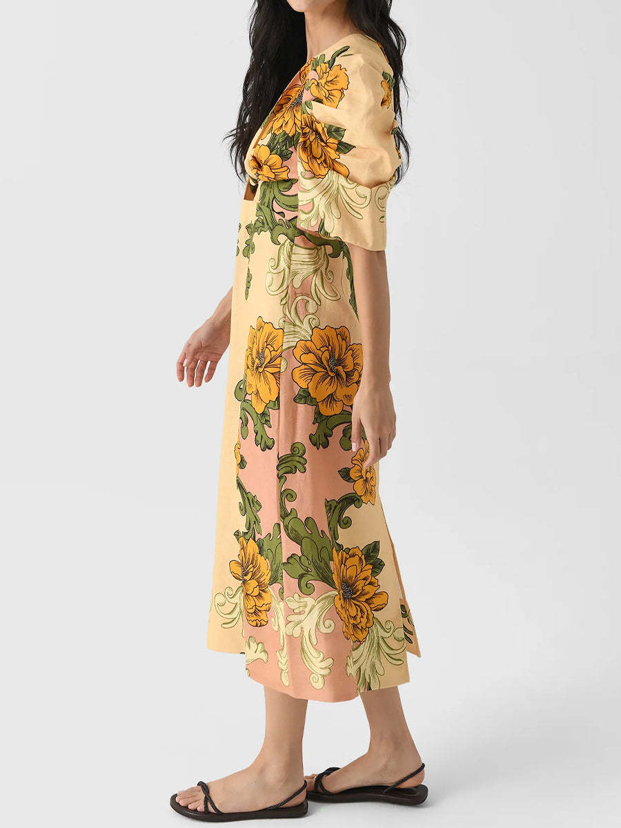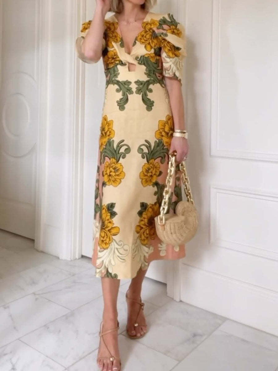 Knotted Printed Short Sleeve Midi Dress