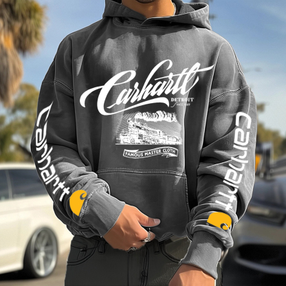 Men's Retro Washed Loose Casual Printed Hooded Sweatshirt