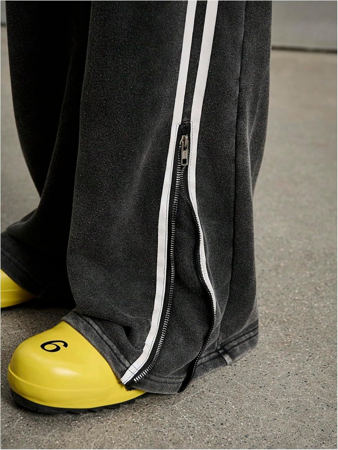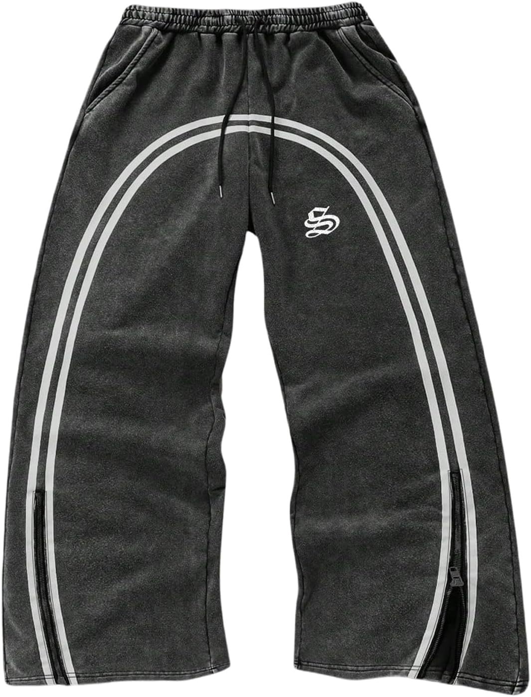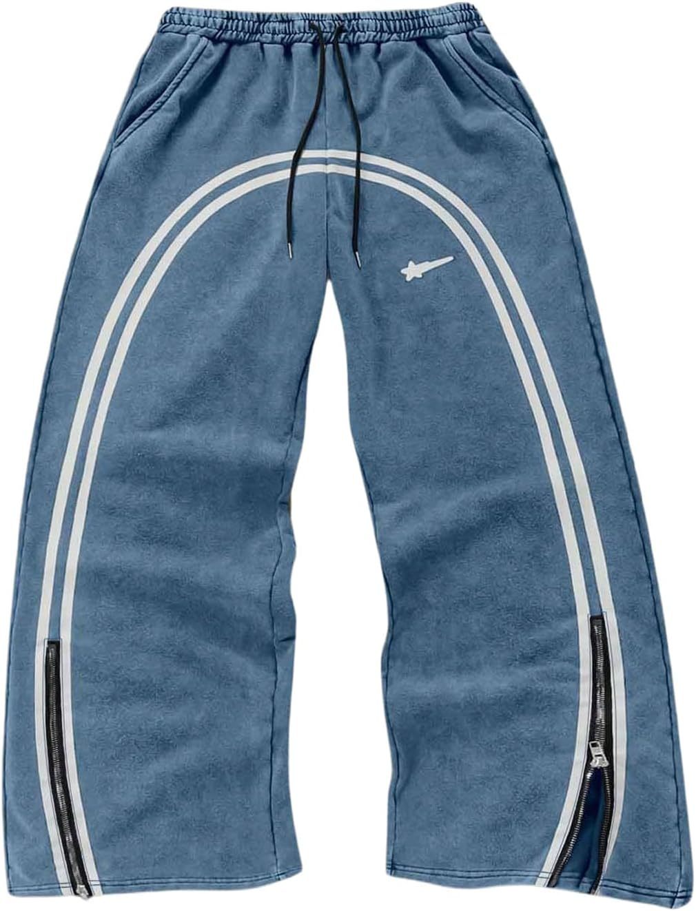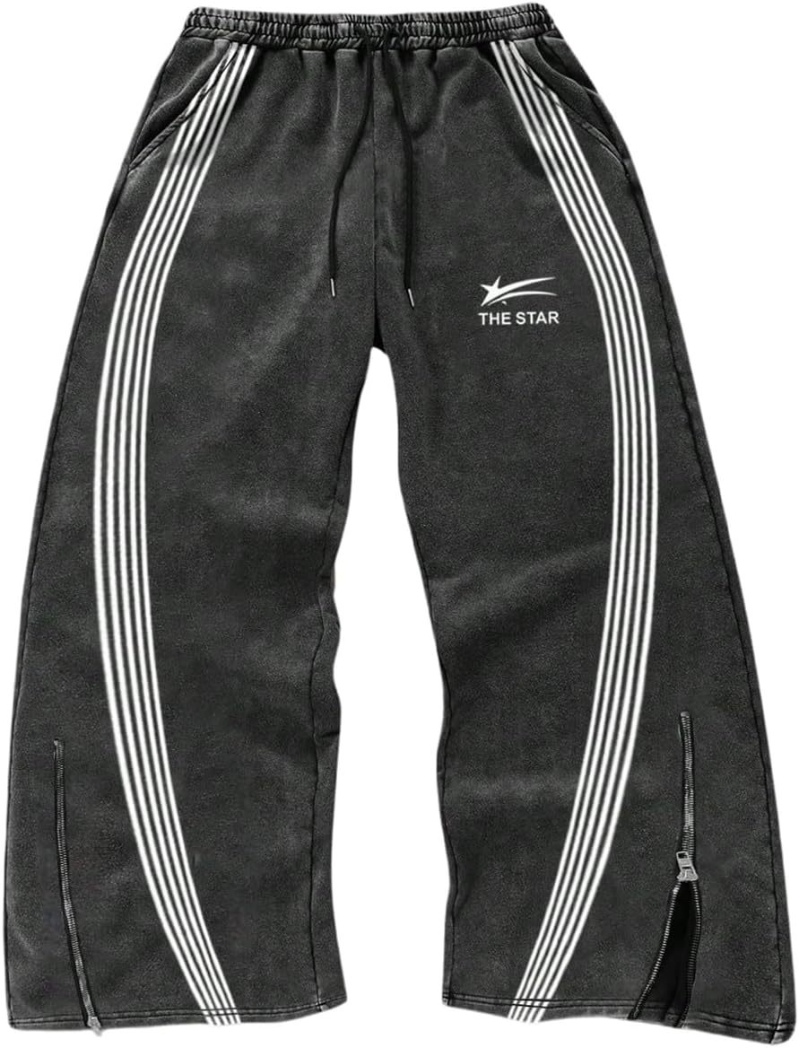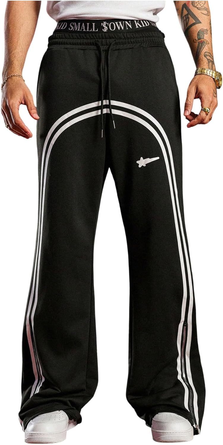 - 2025 pants for men, baggy sweatpants for men, flare sweatpants for men, striped pants for men, star graphic, zipper, elastic waist, baggy joggers, oversize trousers