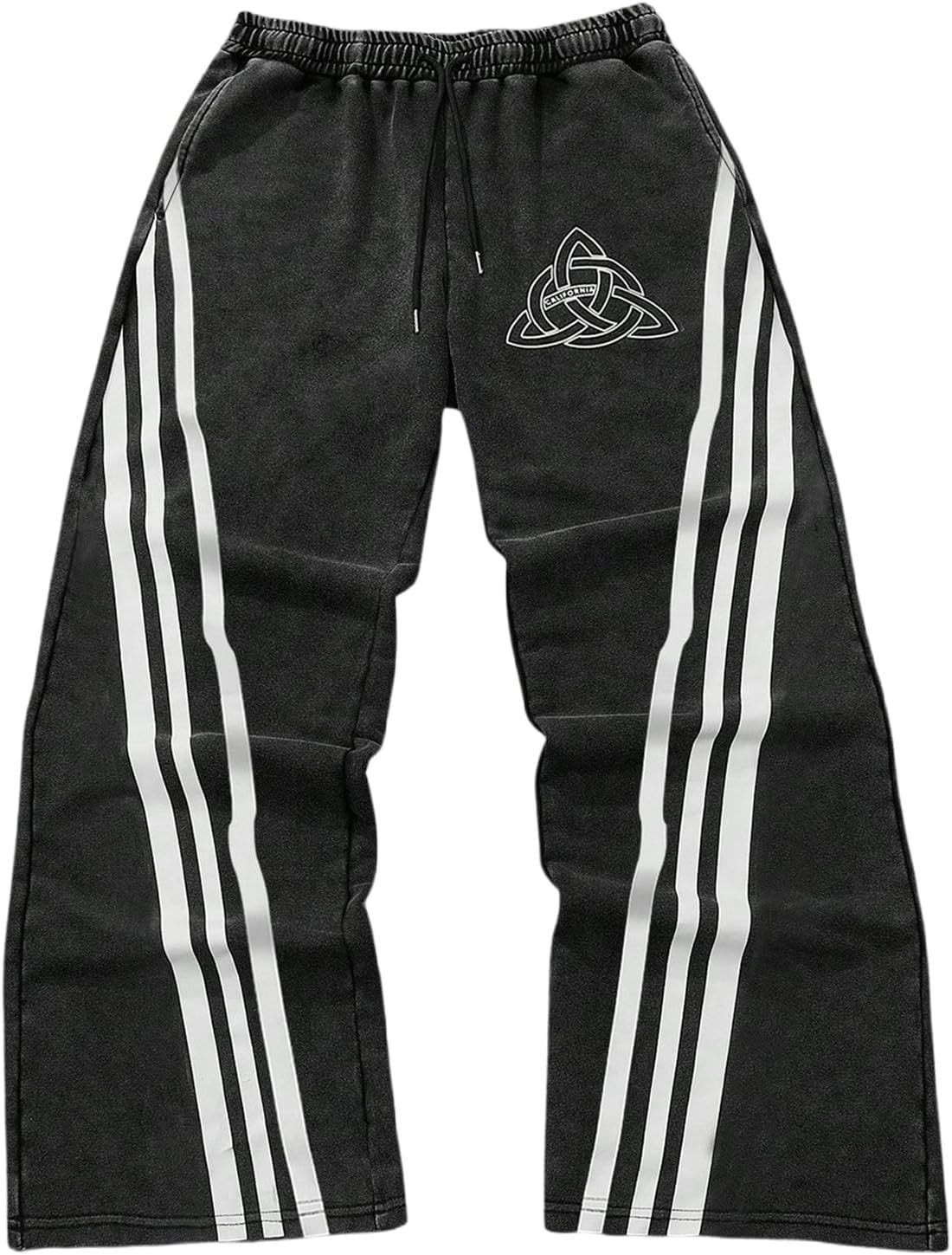 Men's Y2k Baggy Sweatpants Wide Leg Stripe Track Pants Drawstring Summer Autumn Pant with Pockets Streetwear