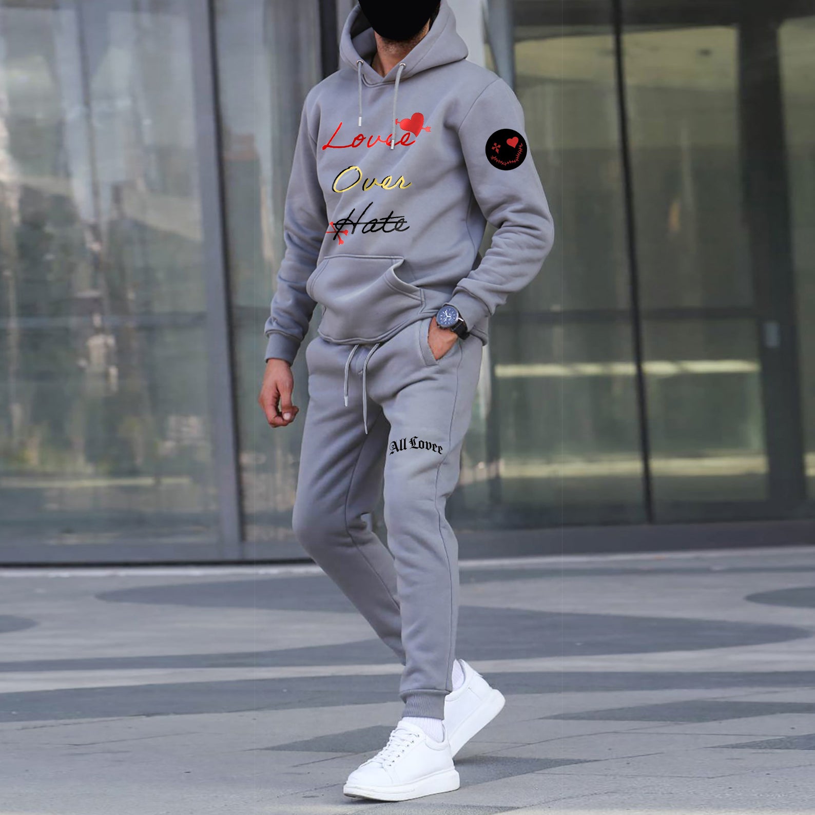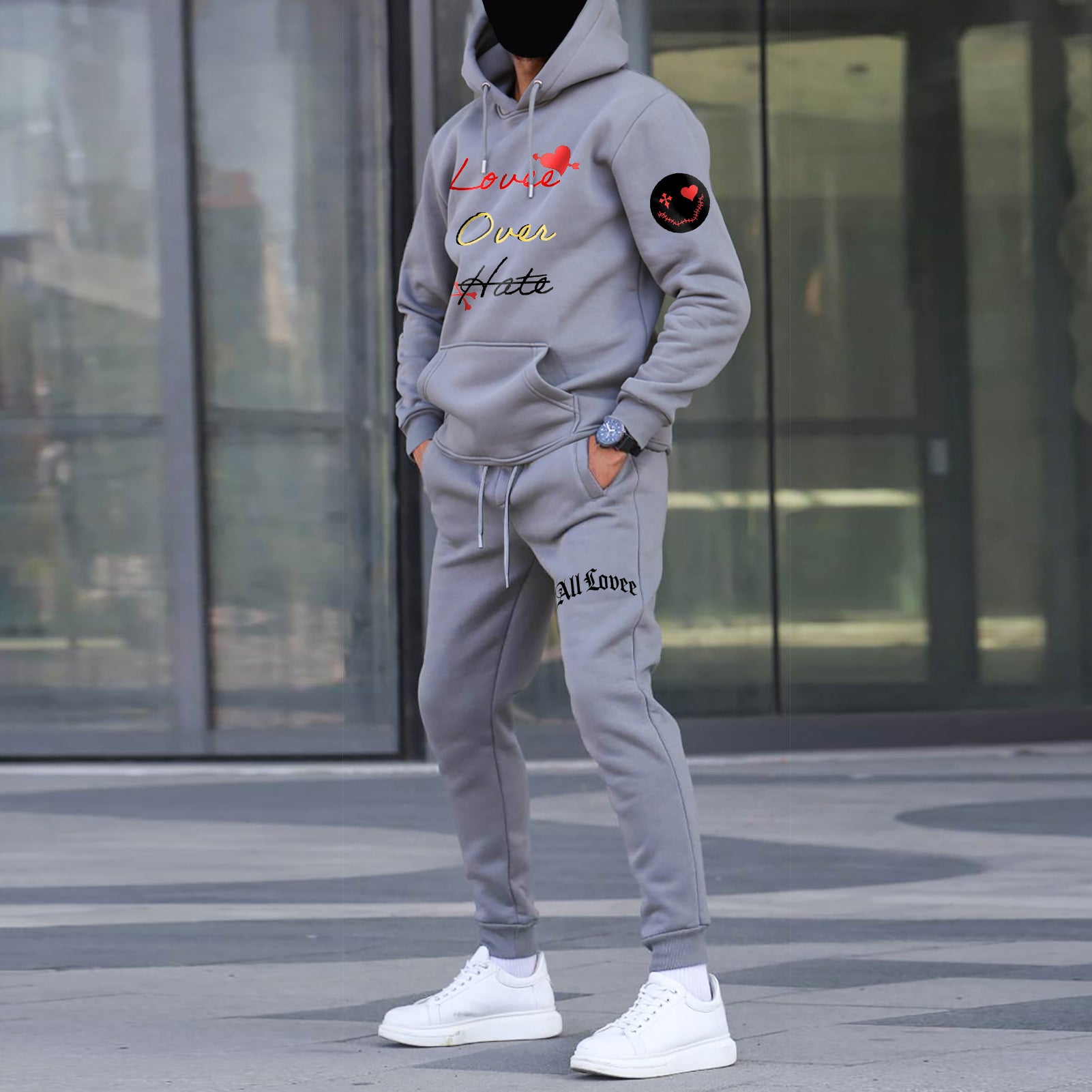 Printed Premium Gray Hoodie Sweatshirt Set