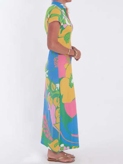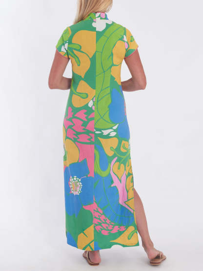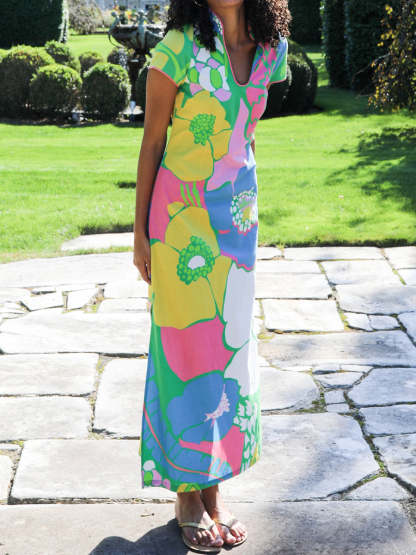 Printed Slit Hem V Neck Maxi Dress