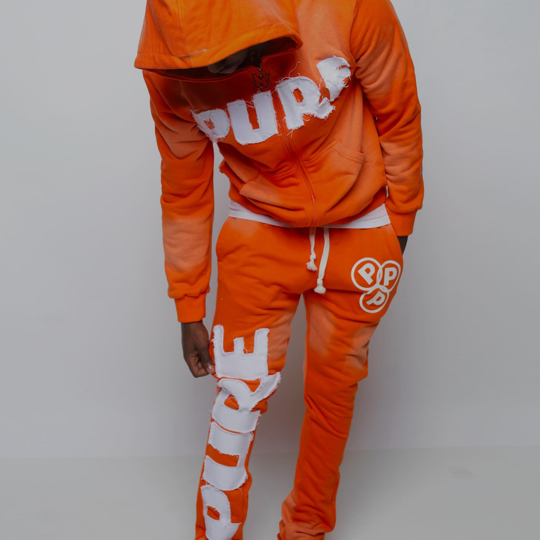 Retro applique embroidery casual sweatshirt hoodie two-piece set