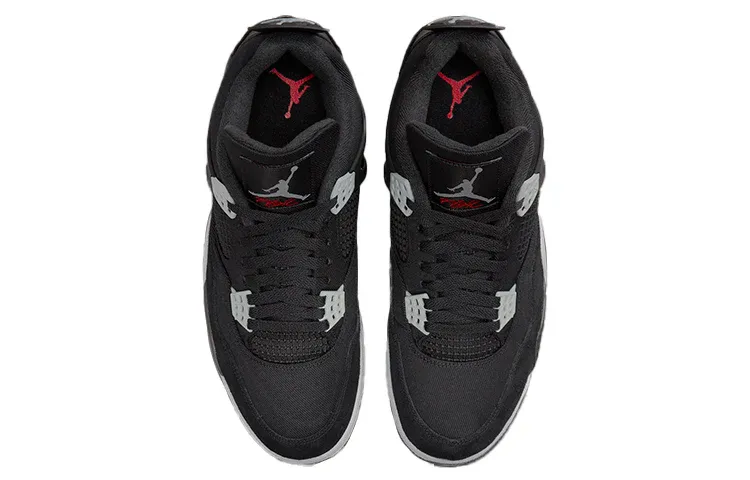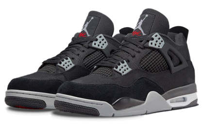 The Air Jordan 4 Retro SE Black Canvas is here to provide a classic twist to your sneaker collection. Featuring a black canvas upper, this sophisticated mid-top sneaker elevates any style instantly with its showstopping design. Accents of gray tonal suede cover the eyelets and forefoot overlays, creating an eye-catching contrast and adding textural interest to the silhouette. The Jumpman logo graces the heel while a crimson Flight logo highlights the woven tongue tag. To complete the look, a two-tone polyurethane midsole with visible Air cushioning in the heel offers maximum durability and comfort for all day wearability. Get ready for heads turning your way each time you wear Out Jordan 4 Retro SE Black Canvas sneakers!