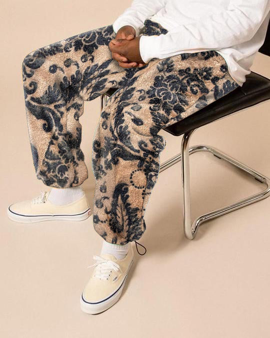 Retro trend street print polar fleece men's casual pants