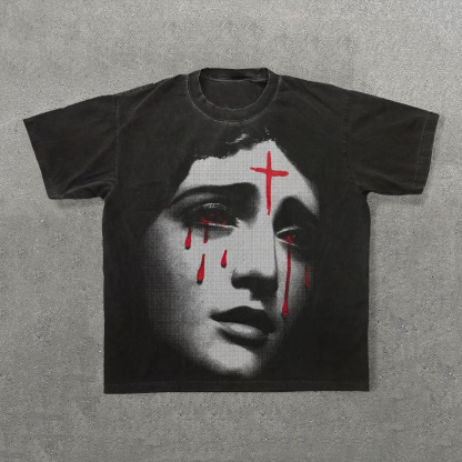 Scary Girl Print Short Sleeve T-Shirt