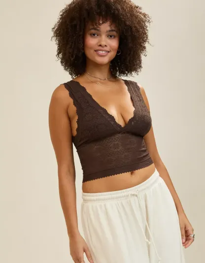 - Our most festive Holiday lace in a flattering deep plunge tank top silhouette.