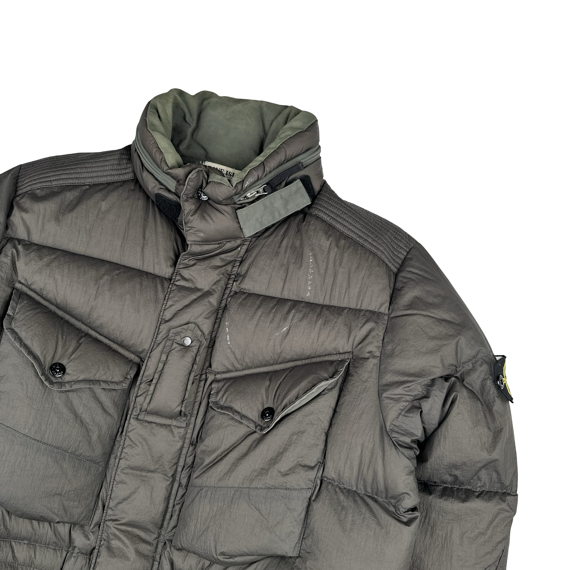 Stone Island 2010 Grey Down Filled Mesh Badge Puffer Jacket - Large