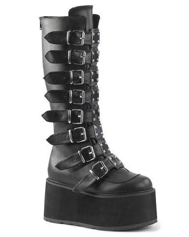Time to show your feet some love and dance the night away in these amazing vegan platform boots with chrome plated straps. Comes with full back zip closure for easy on off wear!