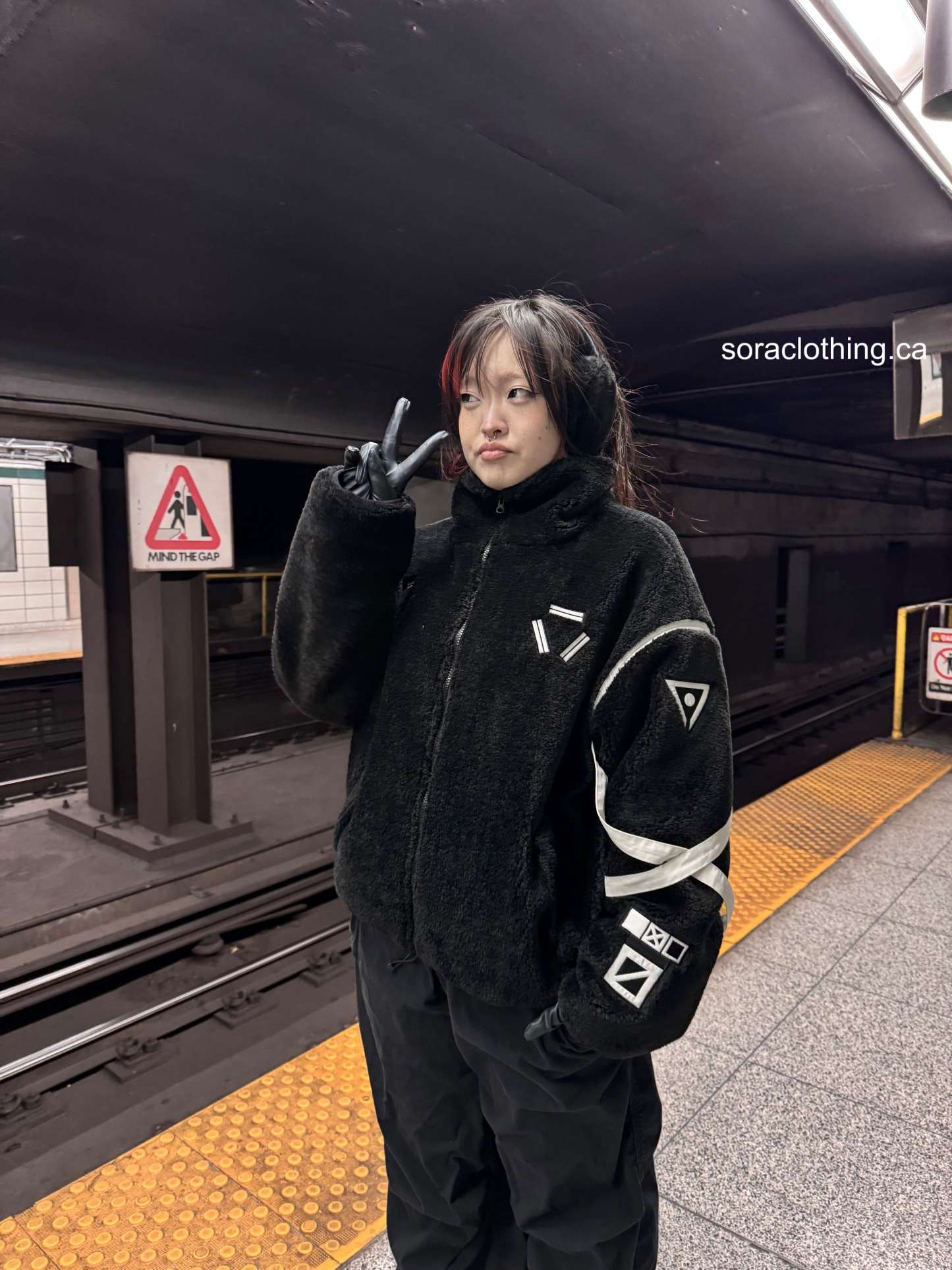 Heavyweight winter insulated sherpa jacket made of Teddy Fleece with embroideries on the front, sleeves, and straps on the left sleeve. Soft and comfortable, warm and breathable. Super Soft!