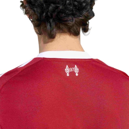 Liverpool FC 25/26 Home Jersey—mid-’00s inspired, AEROREADY, recycled polyester, crisp white piping, classic Liver Bird crest. Show your Reds pride.