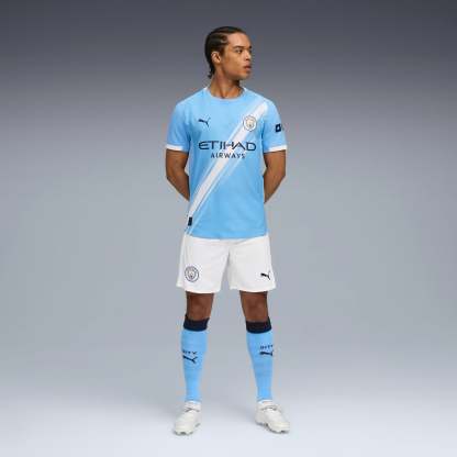 Because at City, we do it our way. For the first time in club history, the Manchester City 25/26 Authentic Home Jersey features the sash – the diagonal stripe design made iconic on away days. Paired with the unmistakable Sky Blue and reimagined for the next generation, it’s a connection to our past, a nod to our future, and a reminder that we do things differently here, on and off the pitch.
